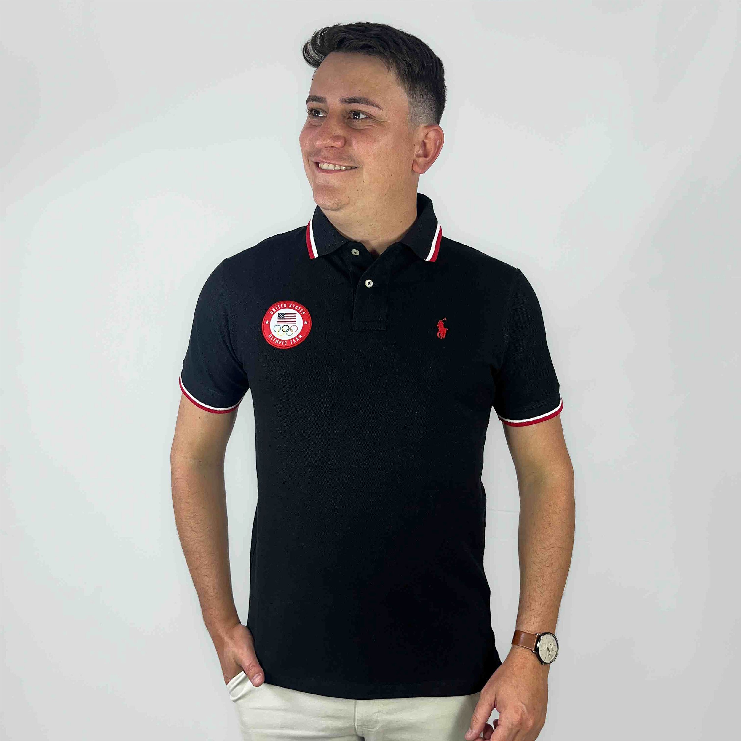 Polo Ralph Lauren Olympic Team Preto Logo Clássico Vermelho